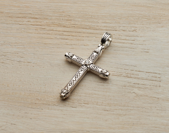 Православный крест из серебра покрыт орнаментом, символизирующим Благодатный огонь. Его выносят из Гроба Господня на особом богослужении, совершаемом накануне Пасхи в храме Воскресения Христова в Иерусалиме. Он символизирует истинный свет, важный для каждого верующего.