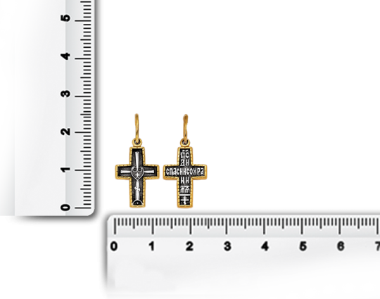 Простой серебряный крест с изображением на лицевой стороне символа Распятого Иисуса – Голгофского креста, который украшен цатой. Цата - царский венец. В центре этого украшения помещен бутон самого чистого, самого прекрасного цветка - лилии.