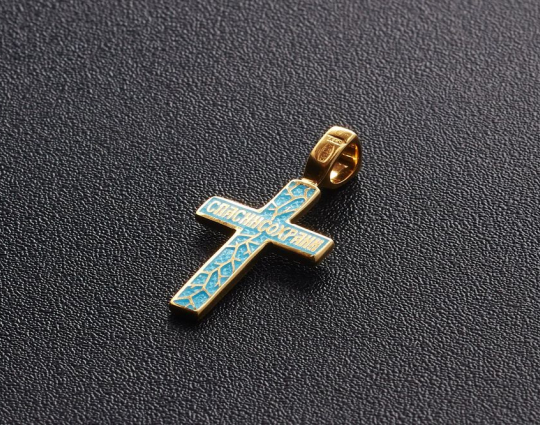 Крест "Спаси и Сохрани" | 01_043_blue | Серебро 925 пробы с позолотой, эмаль