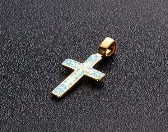 Спасибо, крестик очень милый, голубой, как на фото. Маленький, как раз для малыша. Не нашла, куда прикрепить фото.