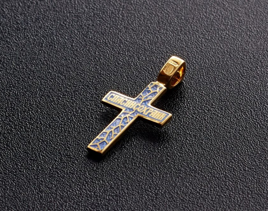 Крест "Спаси и Сохрани" | 01_043_darkblue | Серебро 925 пробы с позолотой, эмаль
