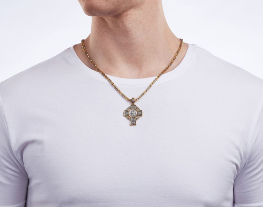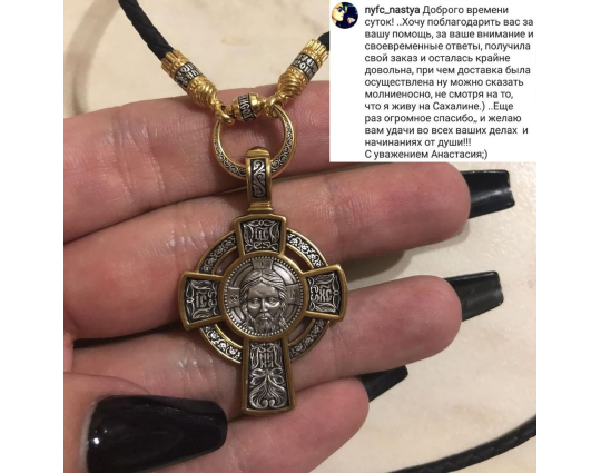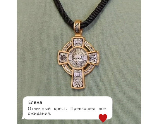 Импонирует смысловое наполнение крестика! Выполнен отменно, позолота визуально выделяет образы. Смотрится вживую, как и указано в каталоге.