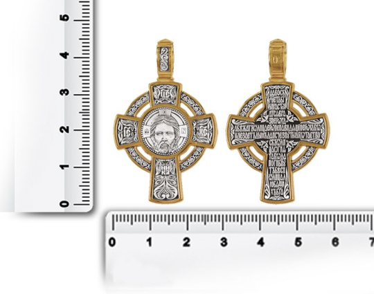 Крест «Спас Нерукотворный. Молитва Да воскреснет Бог» | 8349 | Серебро 925 пробы с позолотой