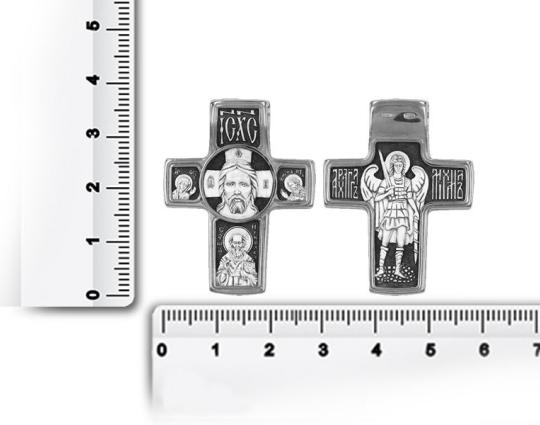 Крест «Спас нерукотворный. Святитель Николай. Архангел Михаил» | 18050 | Серебро 925 пробы