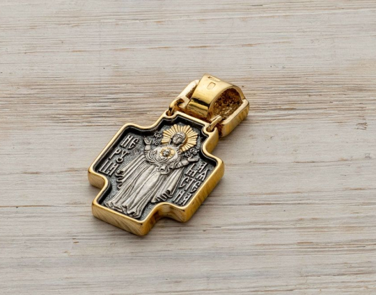 Икона, изображенная на обратной стороне этого крестика, считается по настоящему целительной и чудотворной. Божья Матерь на ней изображена в полный рост с воздетыми к небу руками, нимб украшен позолотой. Этот образ пережил много бед, войн и несчастий, за что и получил свое название. Он дарует такую же стойкость и защиту молящимся. Богородица оградит дом, родных и близких от злых людей, ненастий, болезней, войн и пожаров. Она способствует укреплению семейного благополучия и счастья.