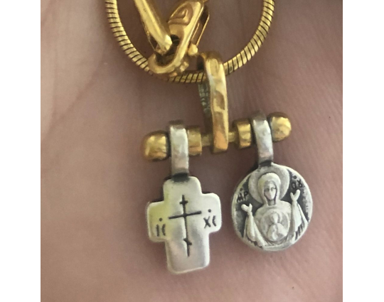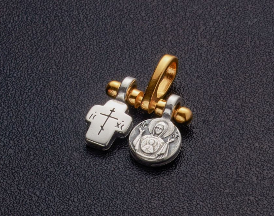 Часто православные люди носят не только крестик, но и образок Богоматери. Поэтому эта подвеска соединяет в себе сразу два символа веры: крест и образок с иконой Божией Матери «Знамение».