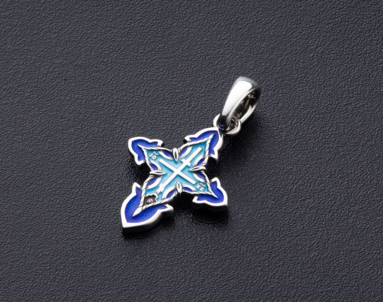 Крестик выполнен из серебра 925 пробы с эмалью