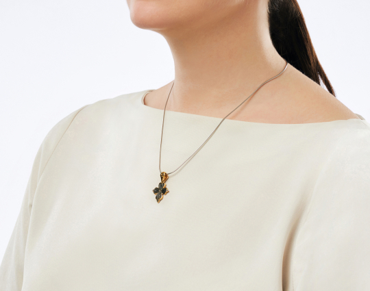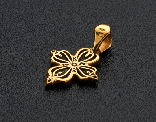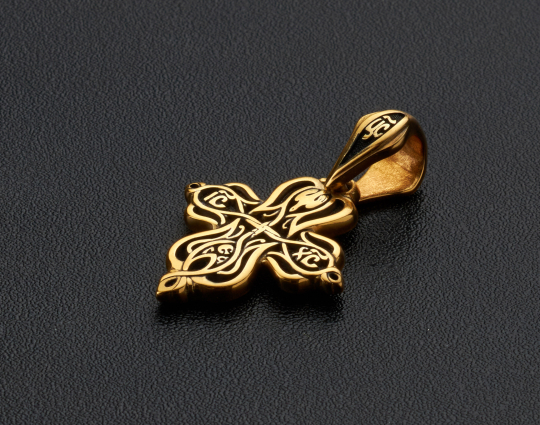 Православный крест из серебра с позолотой выполнен с использованием образа процветших побегов, сплетающихся в крестообразный узор. Это символ новой, райской жизни, которую даровал Христос.