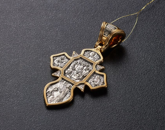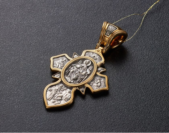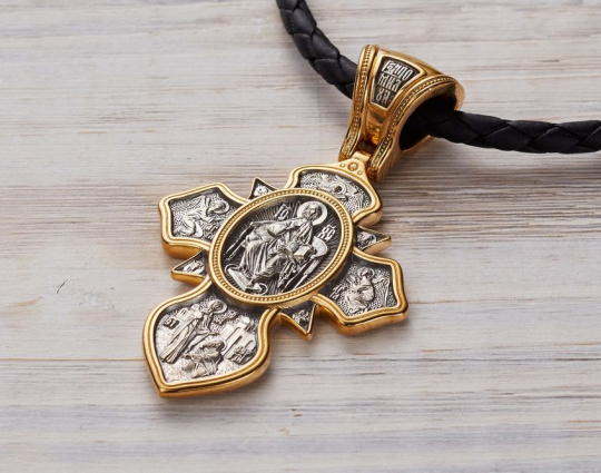 Массивный двухсторонний серебряный крест с позолоченной отделкой, посвященный основателю крупнейшего мужского монастыря, великому человеку - Преподобному Сергию Радонежскому.