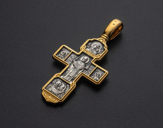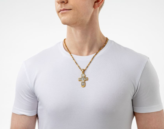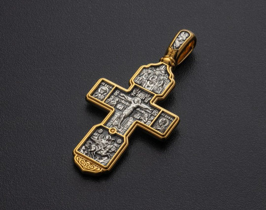Крест Распятие Христово, Архангел Михаил, Николай Чудотворец | 101_559pz | Серебро 925 пробы с позолотой