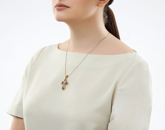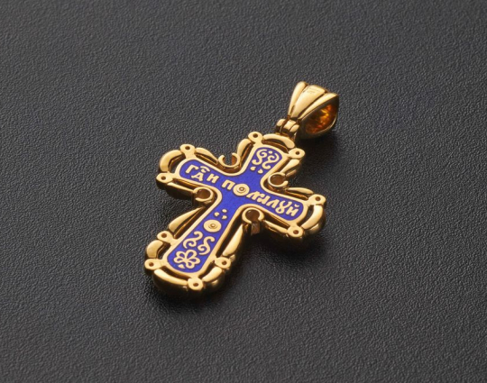 Православный крест "Господи, Помилуй" | krse_105pz_emal | Серебро 925 пробы с позолотой, эмаль