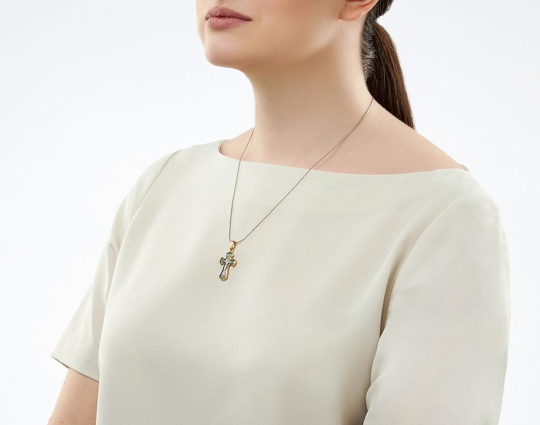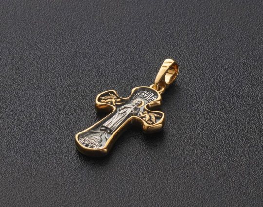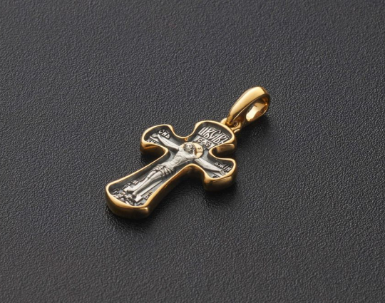 Форма концов крестика из серебра 925 пробы округлая. Это символ жизненной силы такого аксессуара. На лицевой стороне вокруг Распятия размещены надписи: Царь Славы, Сын Божий и Ника.