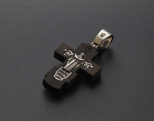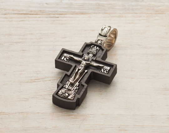 Деревянный нательный крестик с распятием из серебра имеет символическое значение, особую значимость. Деревянная часть воспринимается как напоминание о Животворящем Кресте. Это как источник боли и страданий для Христа, так и спасение для любого верующего.