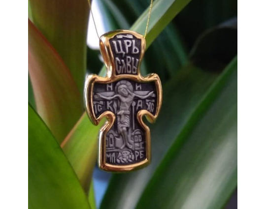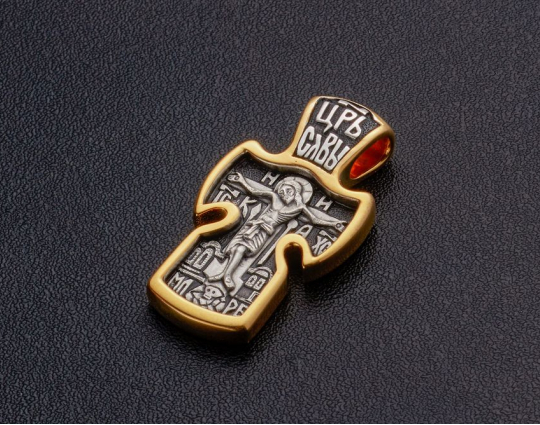 Крест нательный «Царь славы» | 560_pz | Серебро 925 пробы с позолотой
