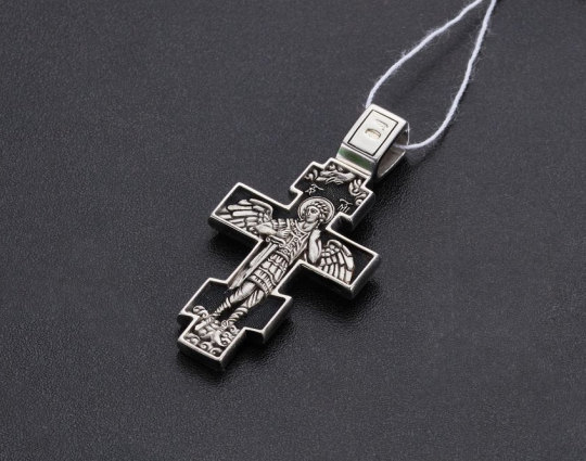 Крест Распятие Христово. Архангел Михаил | 38097 | Серебро 925 пробы с родиевым покрытием