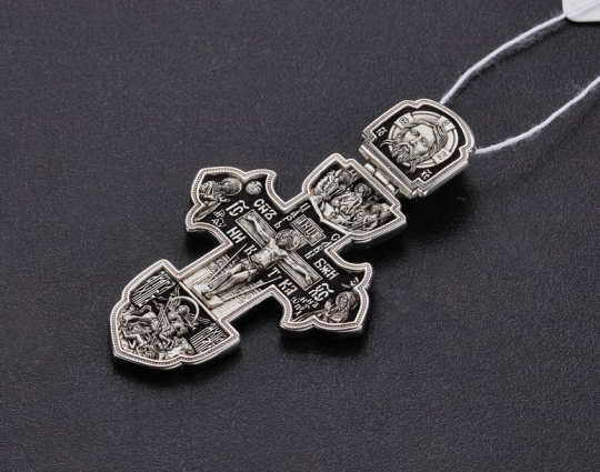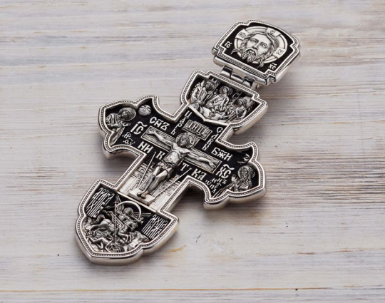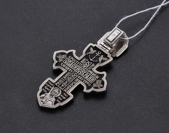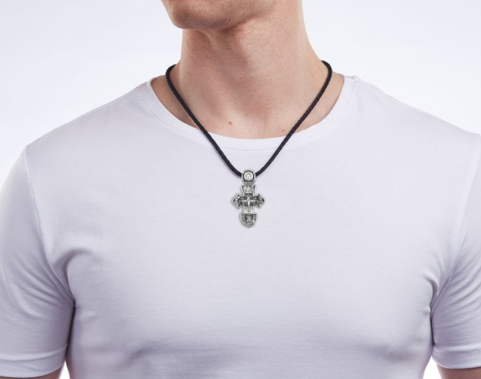На ухе креста изображена самая главная святыня всех православных - Спас Нерукотворный. Считается, что он самый мощный защитный символ Христа, который способен уберечь от темных сил, злых духов и прочих жизненных неприятностей.