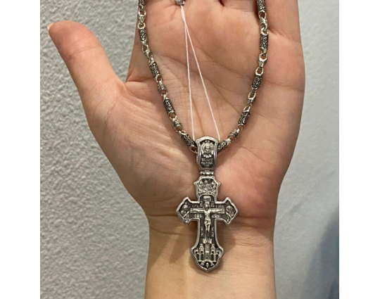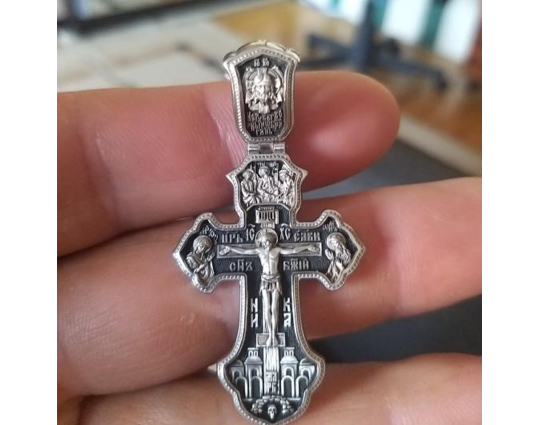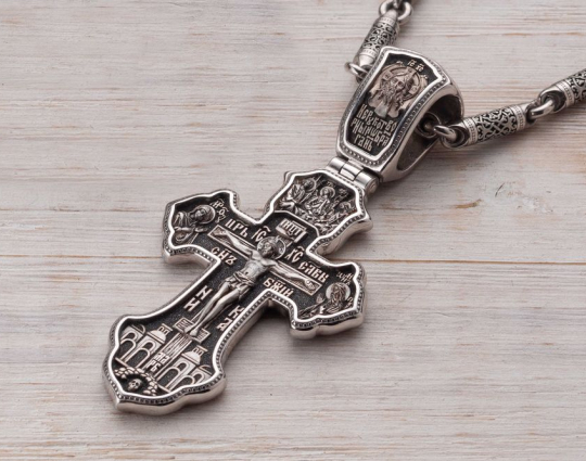 На ухе креста изображена самая главная святыня всех православных - Спас Нерукотворный. Считается, что он самый мощный защитный символ Христа, который способен уберечь от темных сил, злых духов и прочих жизненных неприятностей.