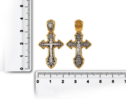 Крест «Распятие Христово. Преподобный Сергий Радонежский» | 8176 | Серебро 925 пробы с позолотой