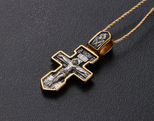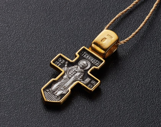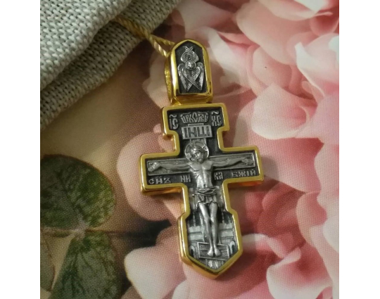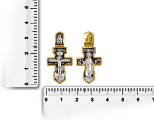 Крест «Распятие Христово. Святитель Николай» | 8308 | Серебро 925 пробы с позолотой
