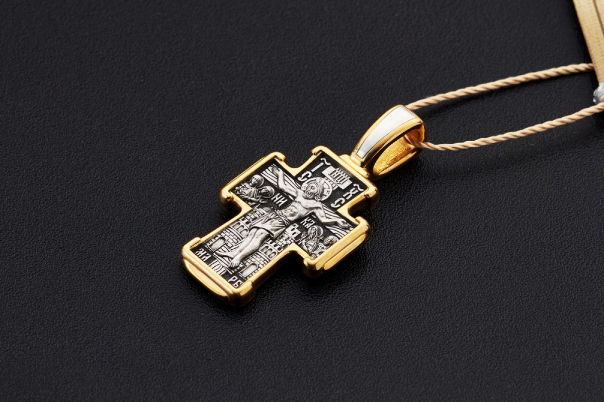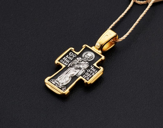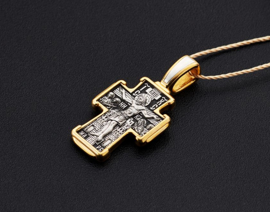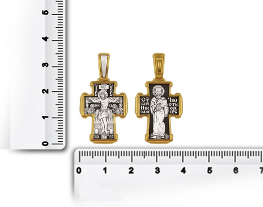 Крест «Распятие Христово. Святитель Николай» | 8162 | Серебро 925 пробы с позолотой