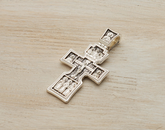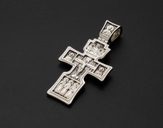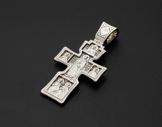 По бокам от Распятия изображены апостолы Петр и Павел. Молитвы к ним прославляют их верность и духовную борьбу, твердое следование вере и её добродетелям. Над Распятием находится образ Пресвятой Троицы, а на ушке - Николай Чудотворец.