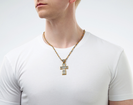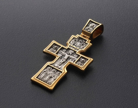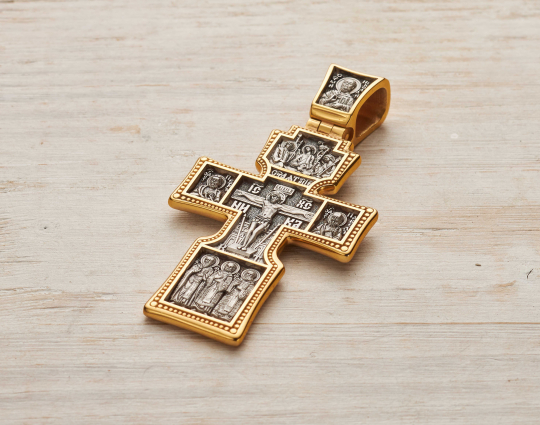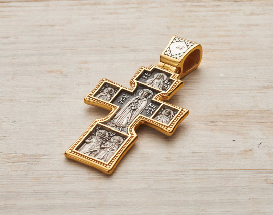 По бокам от Распятия изображены апостолы Петр и Павел. Молитвы к ним прославляют их верность и духовную борьбу, твердое следование вере и её добродетелям. Над Распятием находится образ Пресвятой Троицы, а на ушке - Николай Чудотворец.