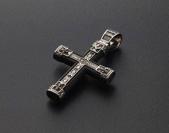 Крест Хризма. Молитва "Спаси и Сохрани" | ke023b | Серебро 925 пробы, эбен