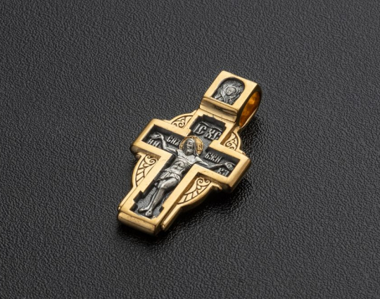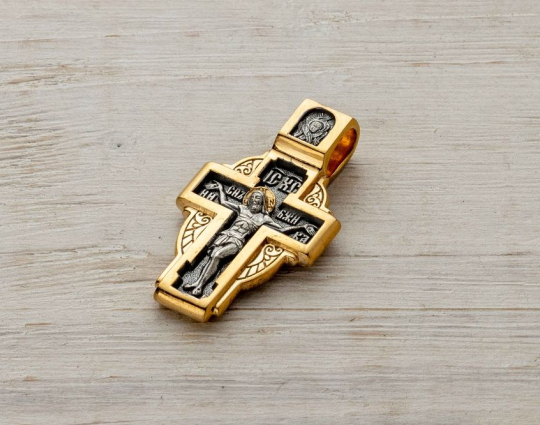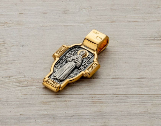 Крест с Распятием и Матроной Московской | kr_026pz | Серебро 925 пробы с позолотой