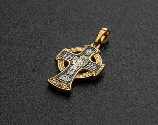 Крест с Архангелом Михаилом | kr_017pz | Серебро 925 пробы с позолотой