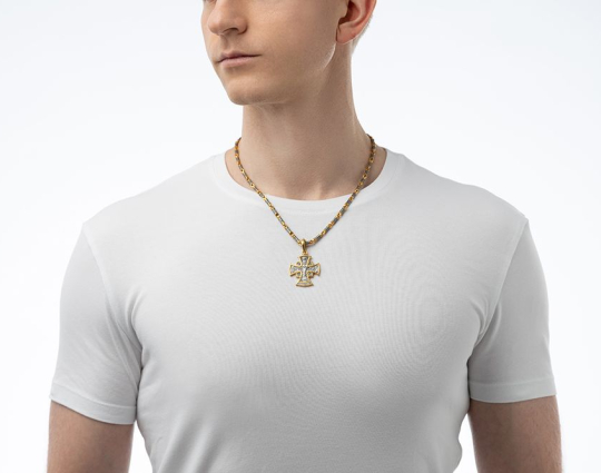 Крестик такой формы называется Византийским. Они известны с самых раннехристианских времен. Их можно увидеть на куполах храмов Греции, Сербии или Болгарии. Равносторонняя форма - образ гармонии мира, сотворенного Господом, и мира, находящегося выше.