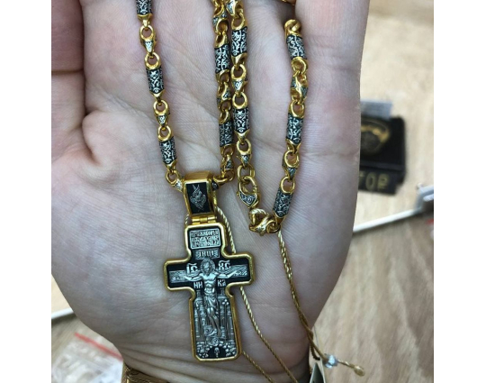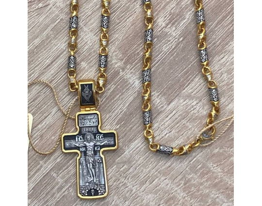 Распятие Христово. Икона Божией Матери «Знамение» | 8375 | Серебро 925 пробы с позолотой