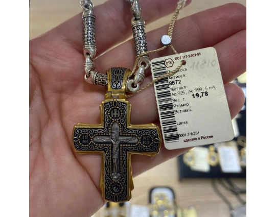 Крест Распятие Христово, Казанская икона Божией Матери | 8672 | Серебро 925 пробы с позолотой