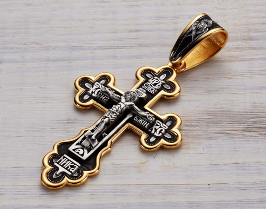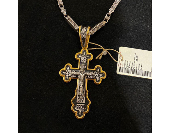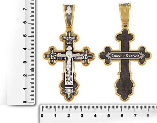 Распятие Христово. Православный крест | 8068 | Серебро 925 пробы с позолотой