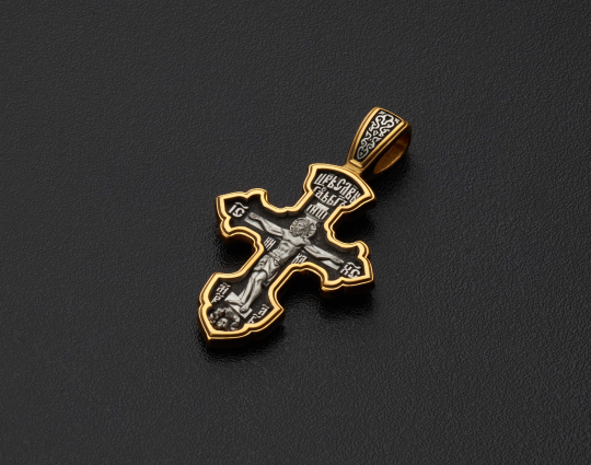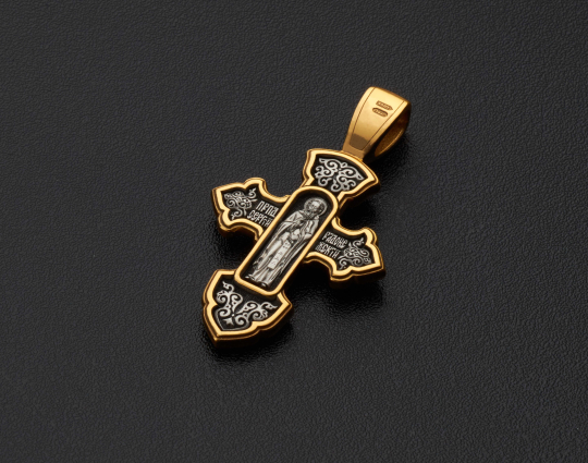 Православный крест из серебра с позолотой с распятием на лицевой стороне и изображением преподобного Сергия Радонежского на обороте. Великий чудотворец, целитель и помощник в любых невзгодах, он так же считается покровителем воинов, защитников своего Отечества.