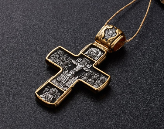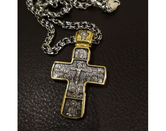 Распятие Христово с предстоящими. Спас Нерукотворный. Апостол Петр. | 8179 | Серебро 925 пробы с позолотой