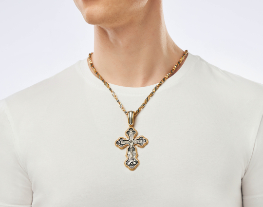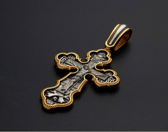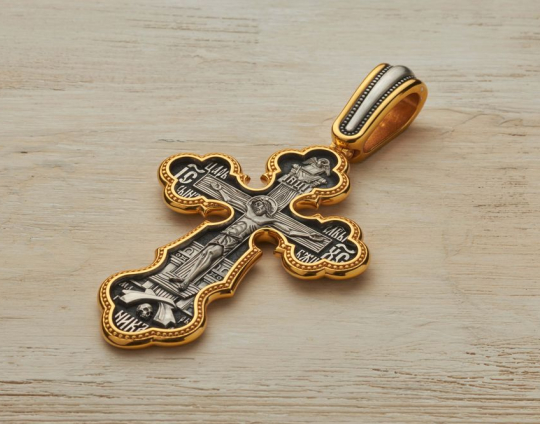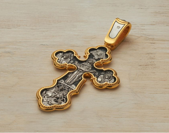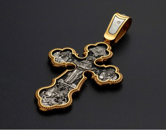 Крест Распятие Христово, Георгий Победоносец, Архангелы и Богородица | 81544 | Серебро 925 пробы с позолотой