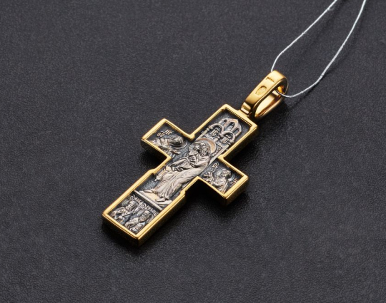 Вверху, над Распятием - Святая Троица. Внизу - иконы Великих Святых. Это Николай Чудотворец и Сергий Радонежский. У них просят помощи в сложных делах, покровительства в решении различных жизненных проблем. Кроме того, они вдвоем обладают даром исцеления.