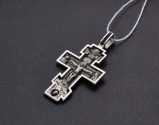 На ухе креста изображена самая главная святыня всех православных - Спас Нерукотворный. Считается, что он самый мощный защитный символ Христа, который способен уберечь от темных сил, злых духов и прочих жизненных неприятностей.