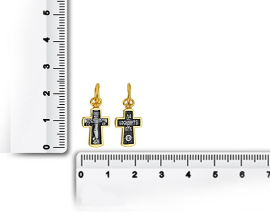 Крест нательный с Распятием, «Да воскреснет Бог» | 699_pz | Серебро 925 пробы с позолотой