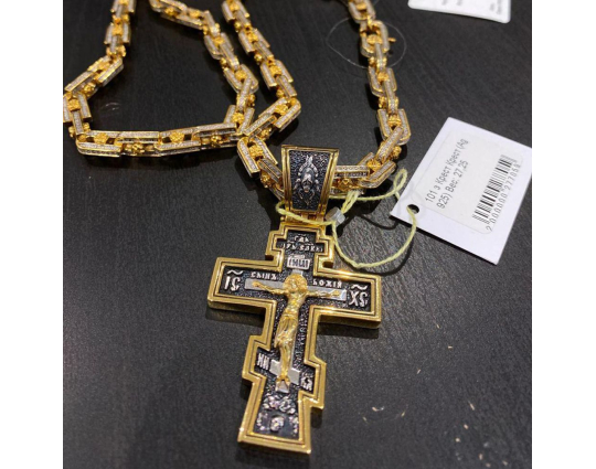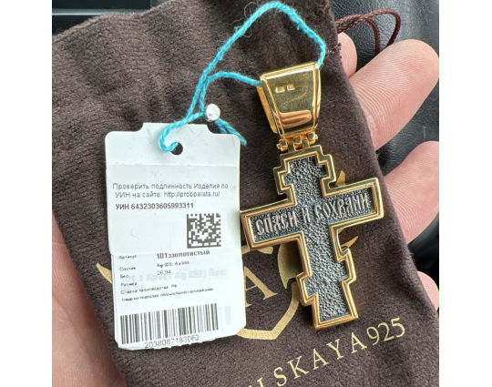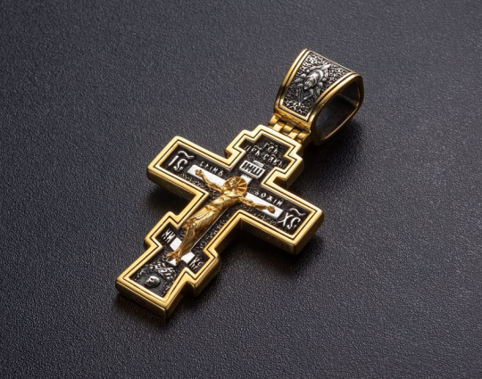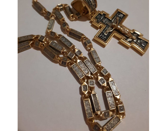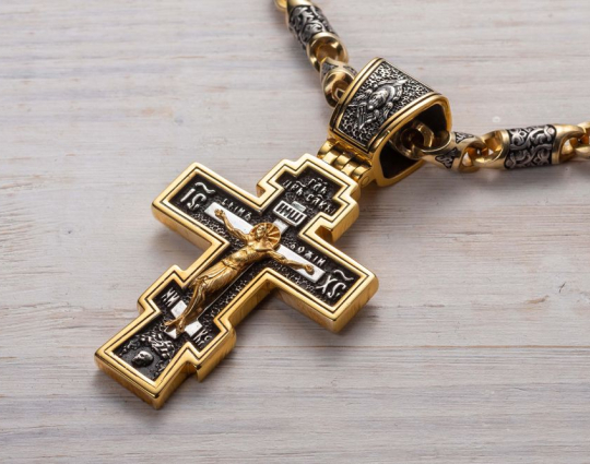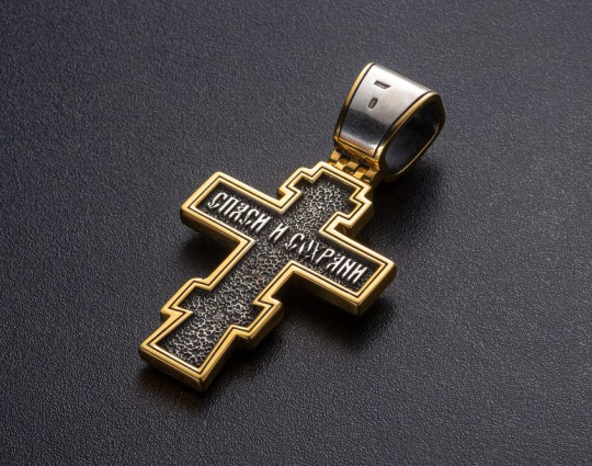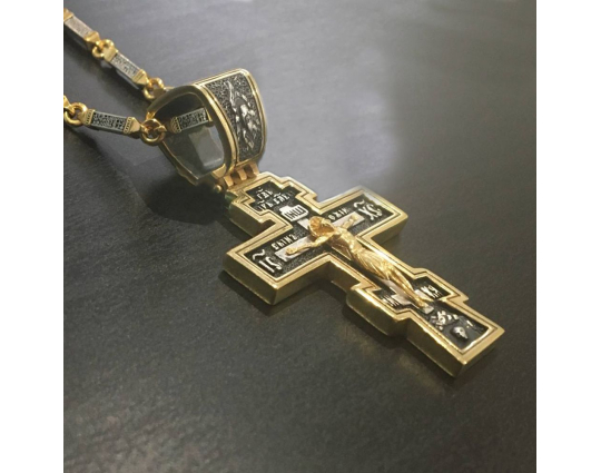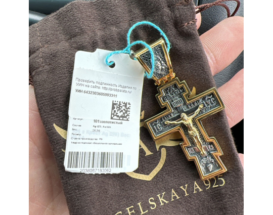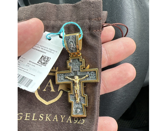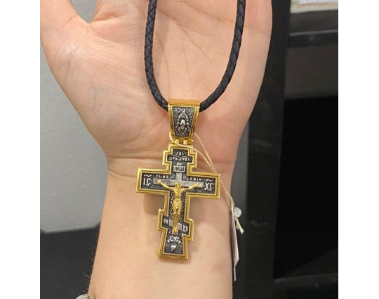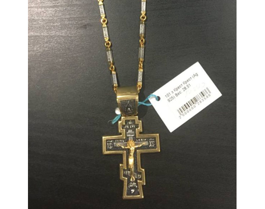 Серебряный крест с позолоченной отделкой строгой