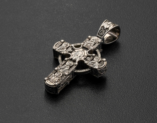 Крест серебряный со Святыми Образами и молитвами | ke902m | Серебро 925 пробы, эбен
