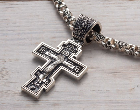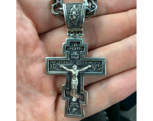Распятие Христово. Молитва Спаси и Сохрани. Большой Серебряный крест.