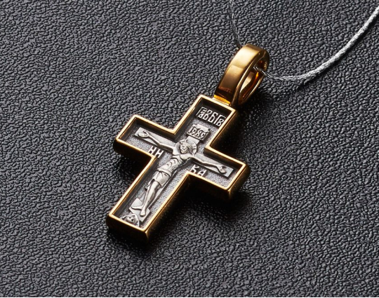 Распятие. Молитва «Спаси и сохрани» | 101_220pz | Серебро 925 пробы с позолотой