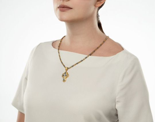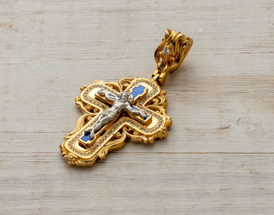 Крест нательный с камнями и эмалью