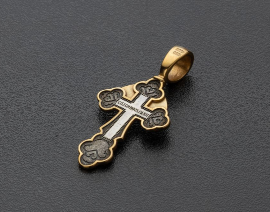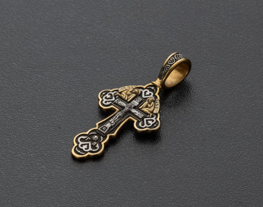 Крест "Православный нательный крестик с ангелами" | 8908 | Серебро 925 пробы с позолотой