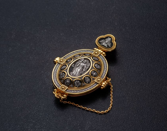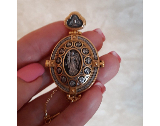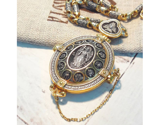 Мощевик с Ангелом Хранителем, Голгофским крестом, Толгской иконой Божией Матери