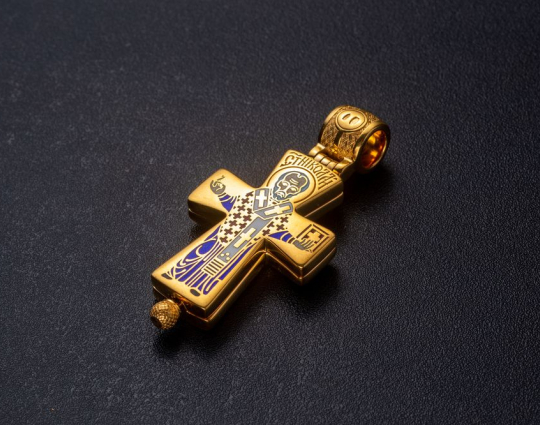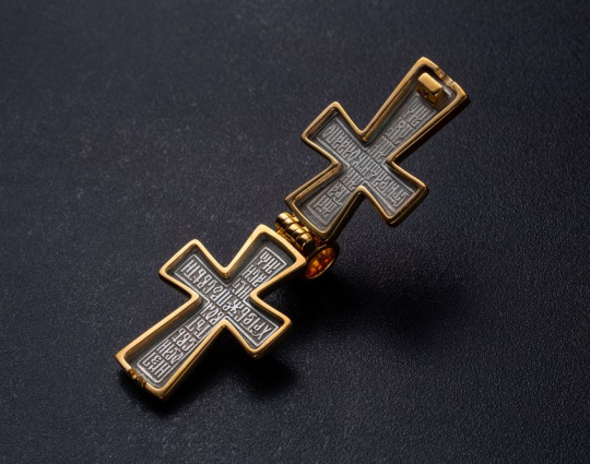Мощевик «Распятие. Св. Николай Чудотворец.Мощевик.» | 107_034pz | Серебро 925 пробы с позолотой