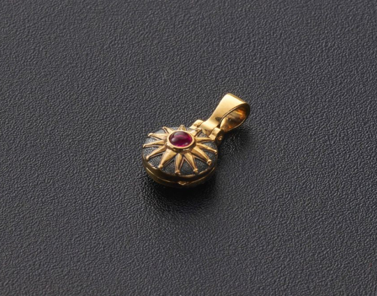 Складень выполнен из серебра 925 пробы с позолотой. Лицевая сторона украшена фианитом в центральной части. От него в разные стороны отходят лучи. Это - Вифлеемская звезда. Символ верного, праведного пути, к добродетелям и спасению.
