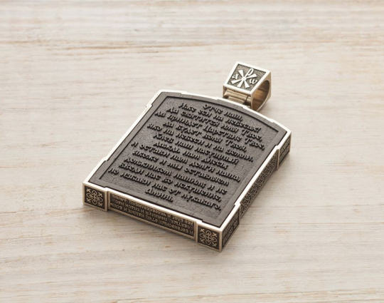 На обратной стороне выгравированы слова молитвы "Отче Наш".
