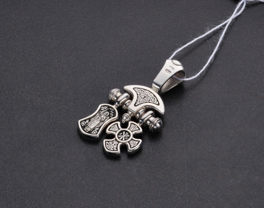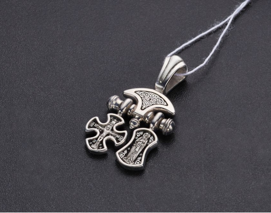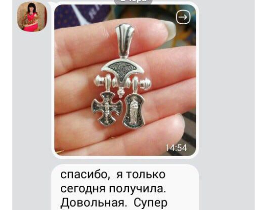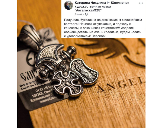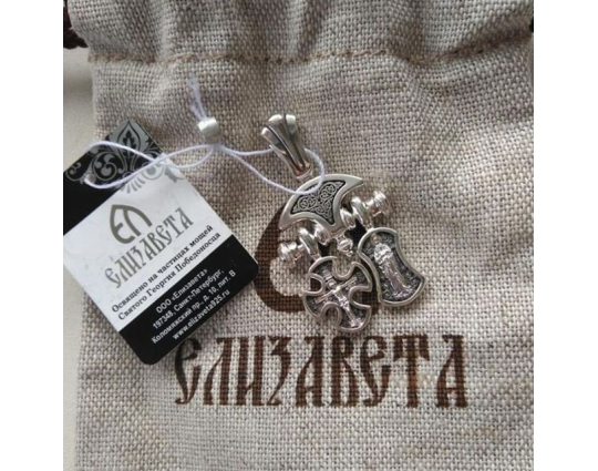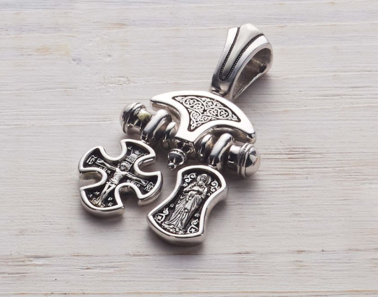 Вторая часть - образок с иконами Валаамской иконы Божией Матери впереди, и Ангела, который охраняет человека, на нательной стороне. Считается, что это защитит от недугов и будет охранять душу человека.